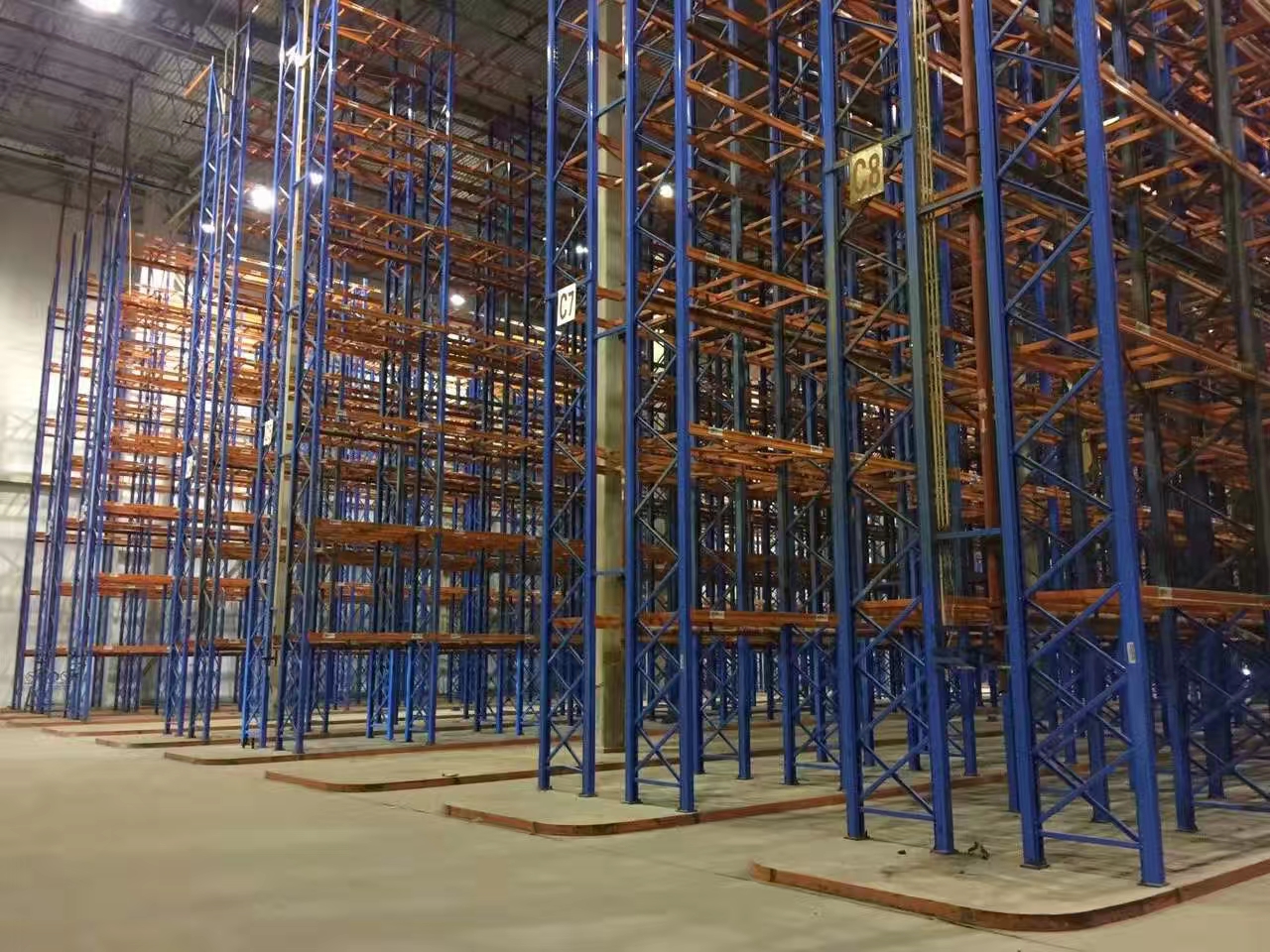 貫通式貨架,出貨方式為先進(jìn)后出適合食品冷庫,生鮮加工冷庫,屠宰廠冷庫。